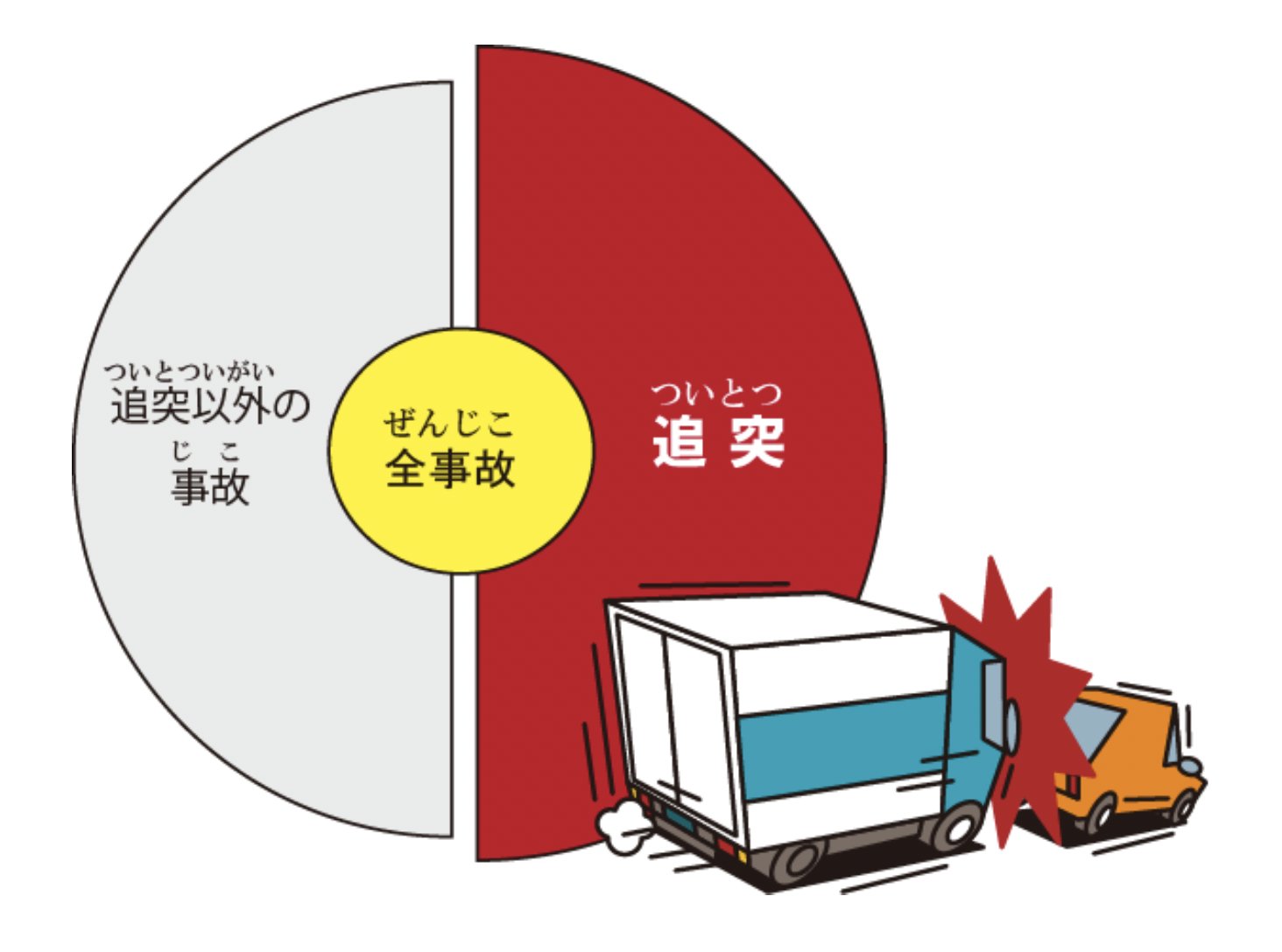 Tijorat (biznes) yuk mashinalari ishtirokidagi yo‘l-transport hodisalarining deyarli yarmini "orqadan borib urilish"(distansiya saqlamaslik) tashkil etadi. Bunday avariyalarning aksariyati haydovchining "hayol surib, e’tiborsiz boshqarishi" (manzen unten) yoki "chalg‘ib, boshqa tomonga qarab haydashi" sababli yuzaga keladi. Shu bilan birga, ular orasida rulda uxlab qolish yoki haddan tashqari charchoq tufayli sodir bo‘ladigan holatlar ham kam emas.